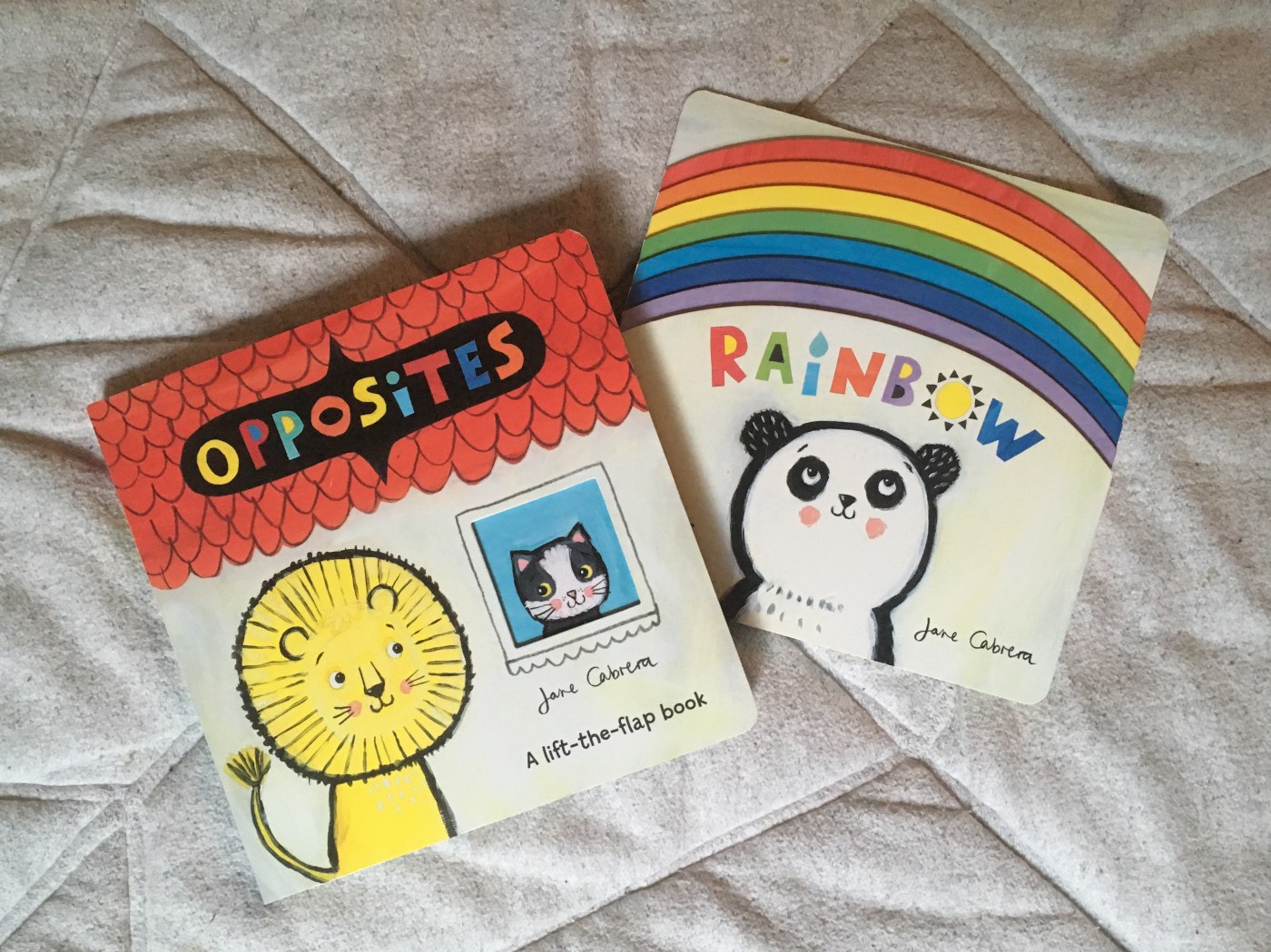 Opposites and Rainbow by Jane Cabrera, £7.99 each (board book), Templar.