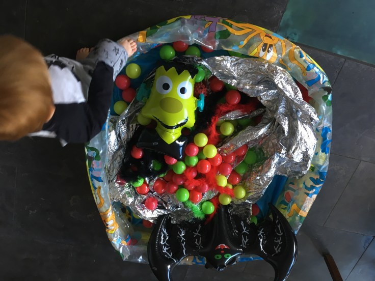 Afterwards, the babies and toddlers were free to explore the themed activities, which included books, instruments and toys, messy play green spaghetti complete with spiders, a sensory spooky ball pool and a haunted house.