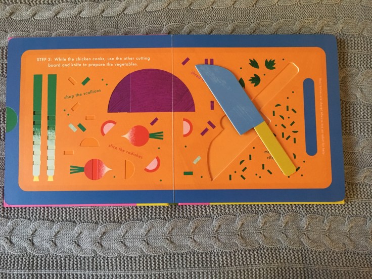But the best bit are the flaps, wheels and punch-out pieces to give mini chefs to role play the cooking process.