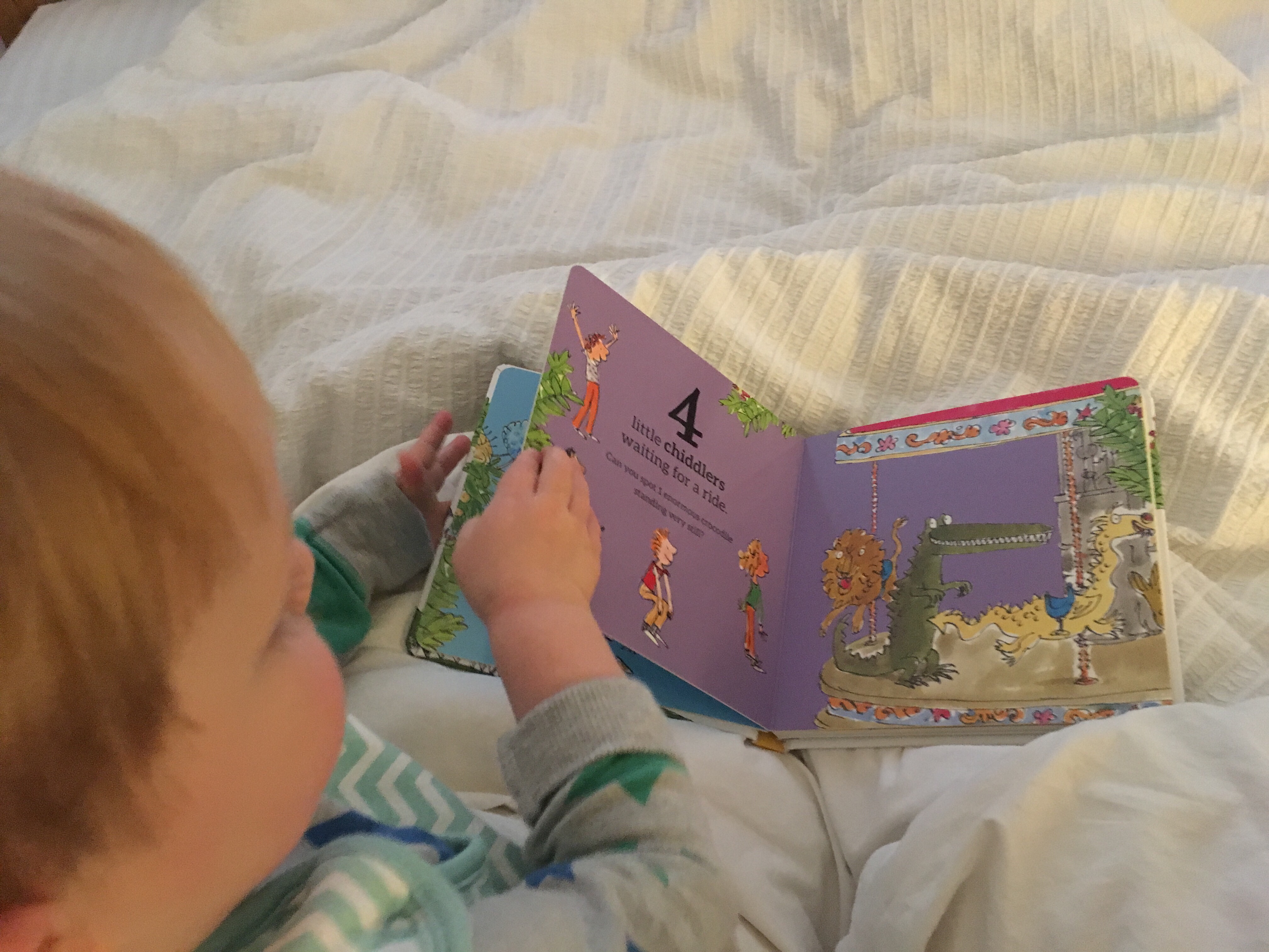 He was soon flicking through the pages, hunting for the crocodile, peering under the flaps and counting the chiddlers.