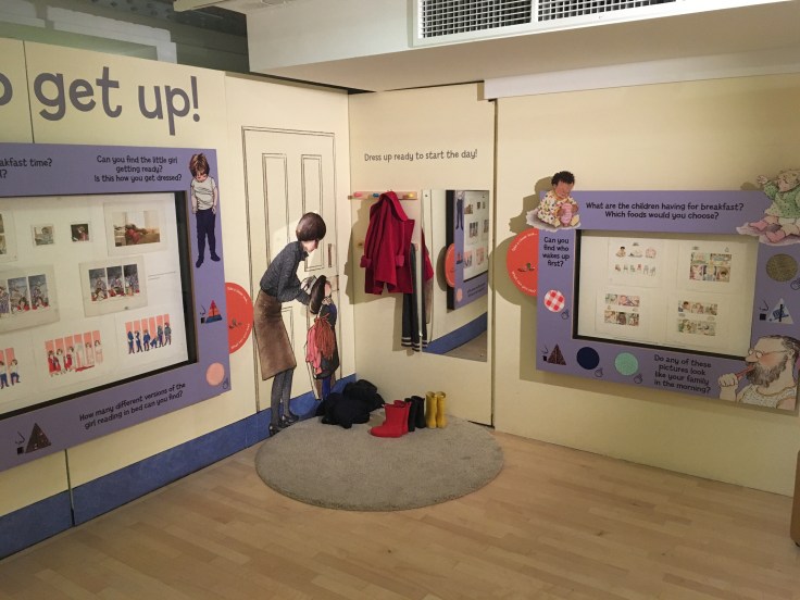 Each section is focused on classic and modern children’s books linked to the theme, such as Baby’s Catalogue by Janet and Allan Ahlberg and Goat Goes To Playgroup by Julia Donaldson and Nick Sharratt, with original artwork that children can get up close to and mood boards to stimulate all the senses.