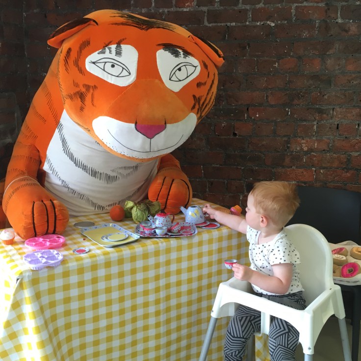There are so many nice touches throughout, like the Chris Haughton birds from Shh! We Have A Plan lurking on the walls by the lift (be aware that there is only one due to the listed nature of the building) and the life-sized Judith Kerr tiger sitting in the cafe which children can feed fabrics doughnuts too.