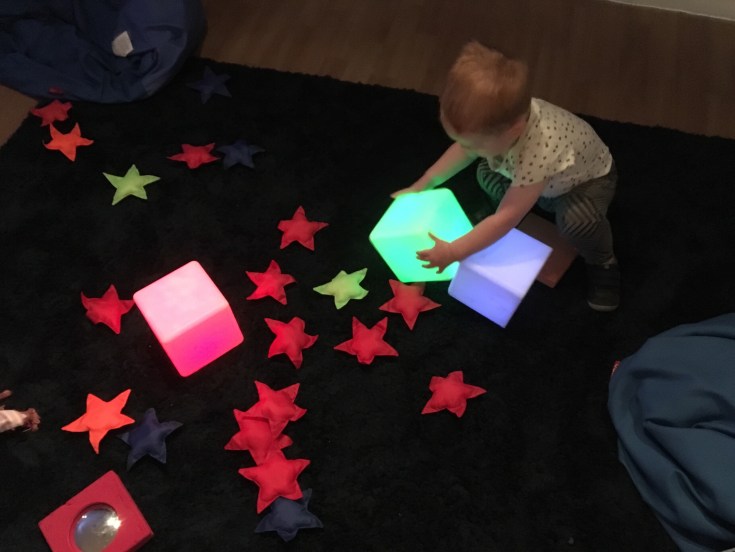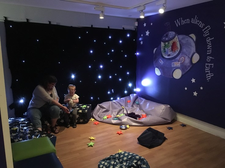 For his age range, the Story Station was also ideal – a quiet retreat with boxes of engaging sensory toys, a reading snug and wooden train set.