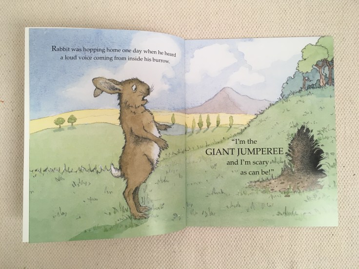 I wrote it as a play a long time ago for an educational publisher, because I was always being asked to research traditional tales and do plays based on them. It is based on an African story about a little animal playing a trick. Once The Gruffalo was published, which I’d originally conceived as a play, I thought ‘If only I’d done The Giant Jumperee as a picture book’. I had to wait and wait until the play went out of print, but there was very little rewriting required. It’s a very nice one for children to act out. I’ve always done it a lot in schools on visits.