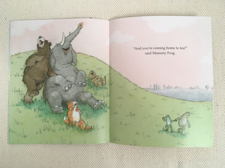 The story is the opposite of The Gruffalo because in that book, the mouse makes up The Gruffalo and it turns out he exists. But in The Giant Jumperee, they all think it exists and it is actually a little frog. I had this idea that you could show each of the animals imagining what the Giant Jumperee is, with each one different, but Helen wanted the child’s imagination to do it.