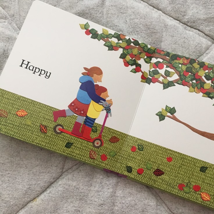 There’s a gorgeous autumnal feel to I Am: a Book about Feelings as the baby and his sister play in the leafy garden, arguing over the scooter, overcoming fears of the cat and picking apples.