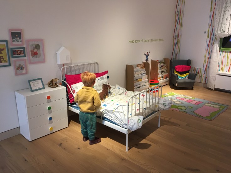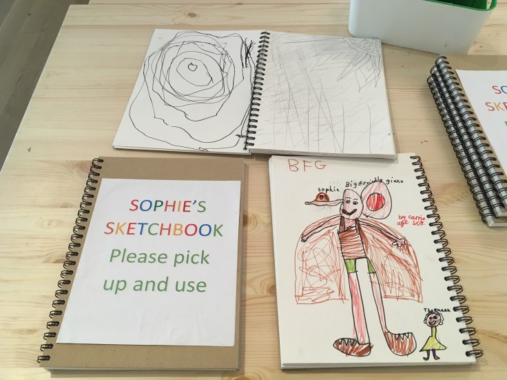 There is a space designed to be Sophie’s bedroom, with story books, a bed and a table where there are sketch pads and pens, plus worksheets to spark ideas.