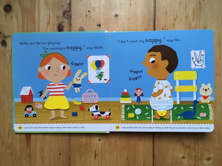 The story follows Millie and Mo as they tackle the move to pants and a potty, with some brilliant flaps, sliders and wheels to keep kids engaged. The illustrations are colourful and fun, too.
