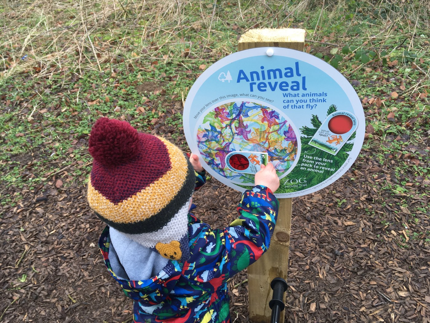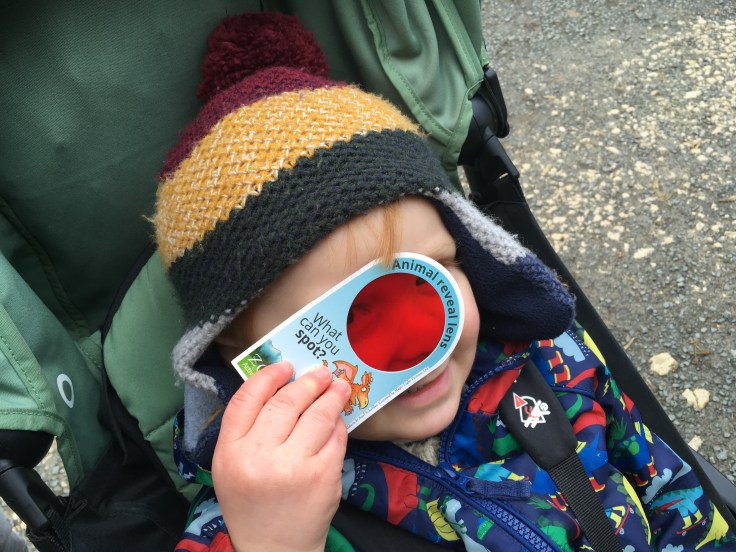 We picked up a £3 paper bag from reception before we set off, which is designed in the style of a school satchel and contained an activity booklet with puzzles and games, plus a pencil, mask, gold star stickers and a little red viewing lens to reveal hidden images on the walk.