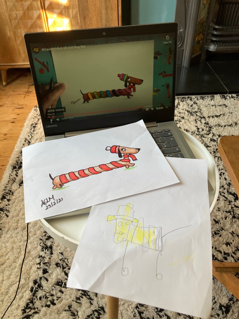 So as part of his homeschooling activities for World Book Day, we decided to both give one of Rob’s sessions a go – and Odd Dog Out was the obvious choice. It was one of our first picture books to read together at bedtimes and we could soon recite all the words.